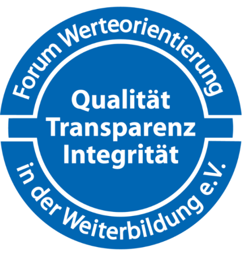 Qualität mit ZertifikatIch verpflichte mich, nach den ethischen Richtlinien und im Sinne des Berufskodex für die Weiterbildung des Forum Werteorientierung in der Weiterbildung e.V. zu handeln und bin dadurch berechtigt, das Siegel „Qualität - Transparenz - Integrität" zu führen.